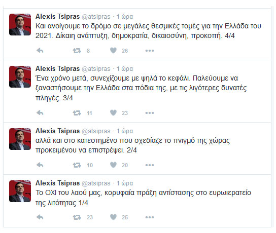 Ο Πρωθυπουργός όπως φαίνεται μάλιστα τρολάρει τον εαυτό του αλλά και τον ελληνικό λαό. Σε χθεσινό του tweet έγραψε χαρακτηριστικά τα εξής: