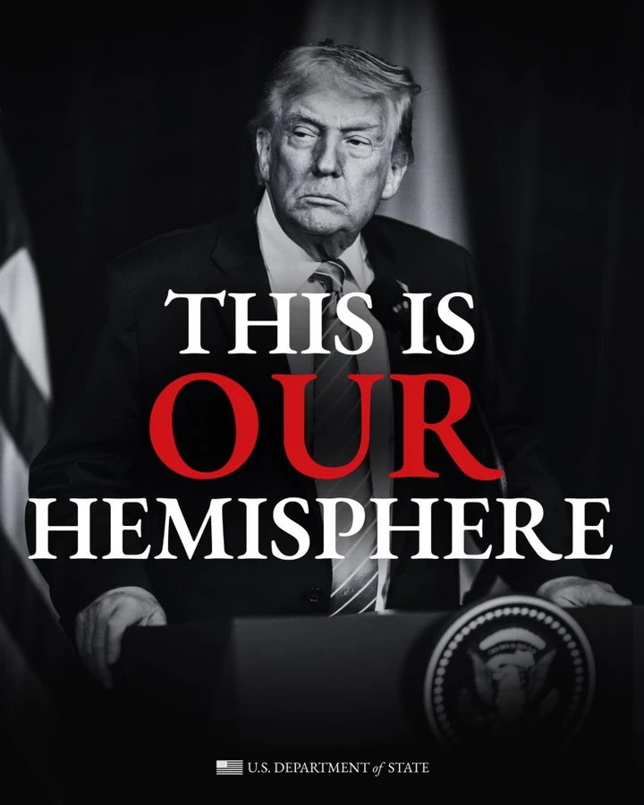 «Αυτό είναι το Δυτικό Ημισφαίριο. Εδώ ζούμε — και δεν πρόκειται να επιτρέψουμε στο Δυτικό Ημισφαίριο να γίνει ορμητήριο για αντιπάλους, ανταγωνιστές και αντιπάλους των Ηνωμένων Πολιτειών», σημειώνεται χαρακτηριστικά.