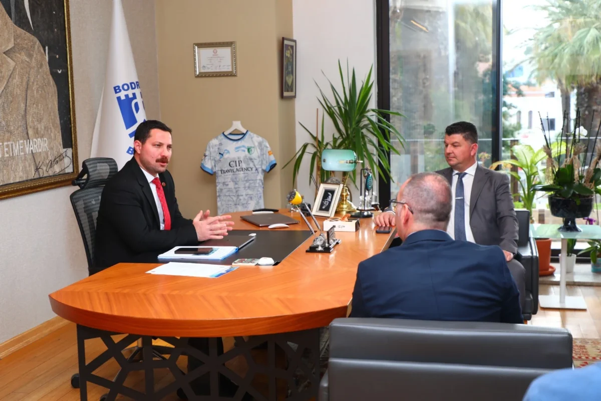 Στη συνέχεια, η αποστολή μετέβη στο Bodrum, όπου πραγματοποιήθηκε συνάντηση με τον Αντιδήμαρχο της πόλης και στελέχη της τοπικής αυτοδιοίκησης. Κατά τη διάρκεια της συνάντησης, αντηλλάγησαν αναμνηστικά δώρα ως ένδειξη αμοιβαίας εκτίμησης, ενώ συζητήθηκαν θέματα που αφορούν την τουριστική ανάπτυξη και την ενίσχυση των δεσμών μεταξύ του Bodrum και της Πάτμου.