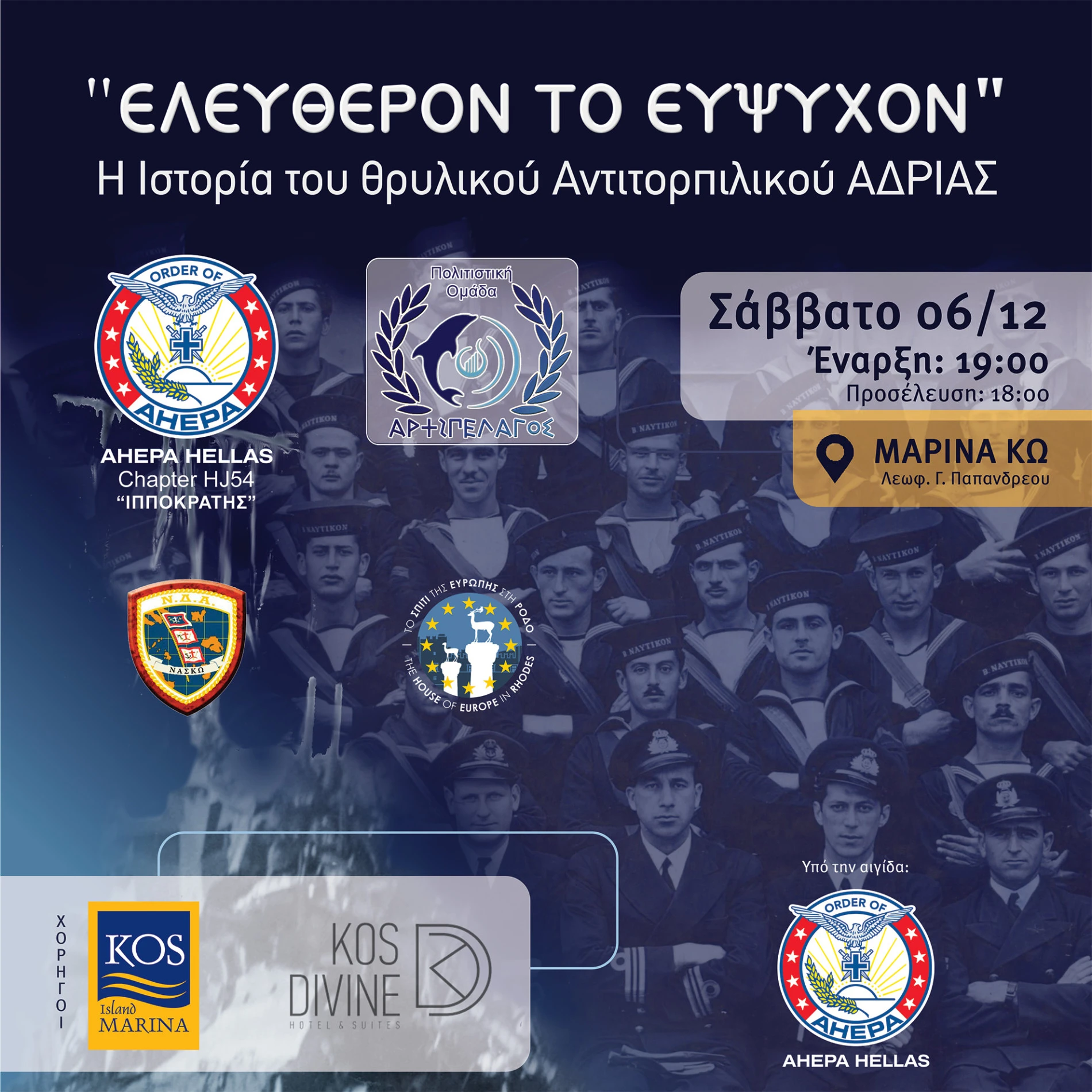 Μέσα από ιστορικά στοιχεία, αφηγήσεις και οπτικοακουστικό υλικό, το κοινό θα έχει την ευκαιρία να γνωρίσει την ηρωική πορεία του αντιτορπιλικού ΑΔΡΙΑΣ, ενός από τα λαμπρότερα σύμβολα αυτοθυσίας και ανδρείας του Ελληνικού Πολεμικού Ναυτικού.