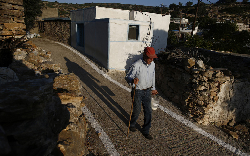 Ο Γιώργος Μιχελής, 84 χρονών, επιστρέφει από το τάισμα των ζώων του, στο Μικρό Χωριό