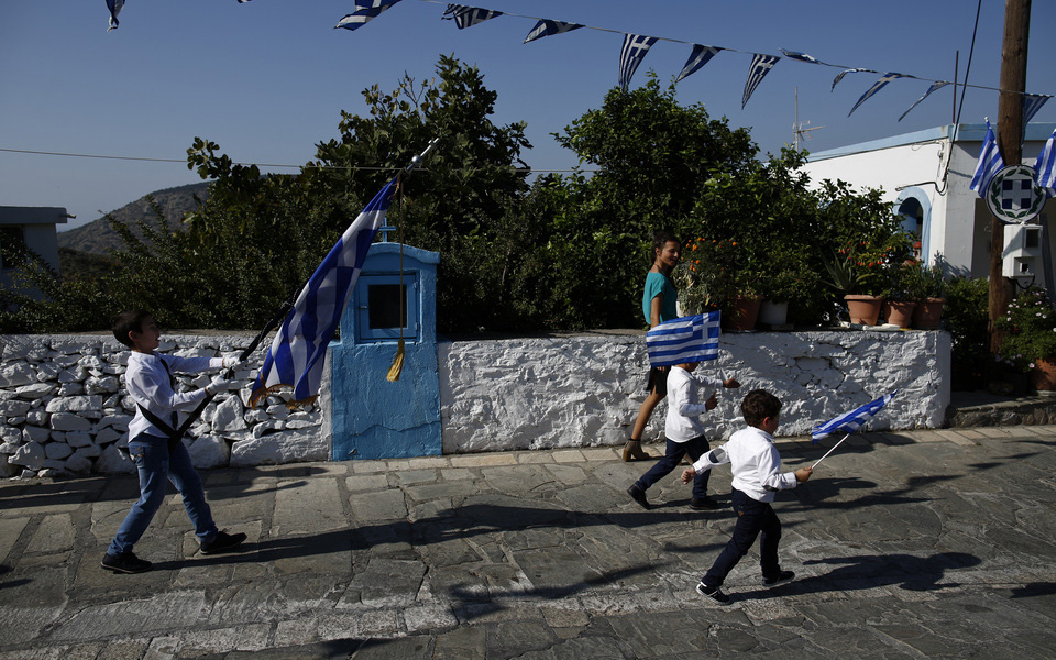 Μαθητές του Δημοτικού και του Νηπιαγωγείου παίρνουν μέρος στην παρέλαση της 28ης Οκτωβρίου στο Μεγάλο Χωριό.