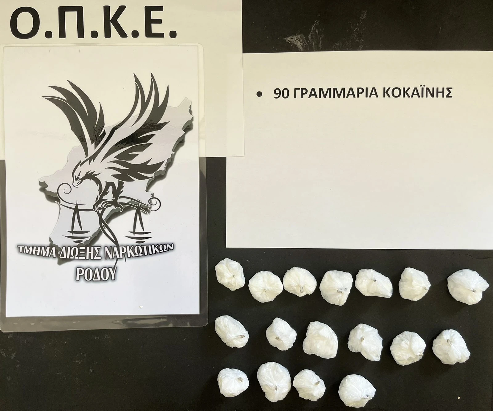 Το Σάββατο (13 Σεπτεμβρίου 2025) βραδινές ώρες στη Ρόδο, στο πλαίσιο αξιολόγησης πληροφοριών σχετικά με υπόθεση διακίνησης ναρκωτικών ουσιών, εντοπίστηκαν σε αύλειο χώρο σχολικής μονάδας -17- «φιξάκια» κοκαΐνης, συνολικού βάρους -90- γραμμαρίων, από περιπολούντες αστυνομικούς της Ο.Π.Κ.Ε..