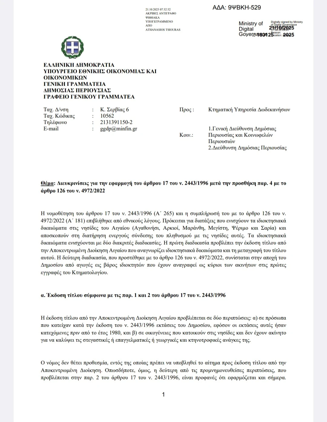 Με μεγάλη ικανοποίηση ανακοινώνουμε ότι, ύστερα από συνεχή προσπάθεια, τεκμηριωμένες παρεμβάσεις και επίμονες διεκδικήσεις της Δημοτικής Αρχής, που περιελάμβαναν πολλά ταξίδια και συναντήσεις στο Υπουργείο Οικονομικών, τόσο σε επίπεδο πολιτικών όσο και υπηρεσιακών παραγόντων, εκδόθηκε σχετική εγκύκλιος από το Υπουργείο Εθνικής Οικονομίας και Οικονομικών, μέσω της Γενικής Γραμματείας Δημόσιας Περιουσίας. Η εξέλιξη αυτή επιλύει οριστικά τα ιδιοκτησιακά ζητήματα των κατοίκων των Αρκιών, καθώς και πέντε ακόμη ακριτικών νησιών, φέρνοντας δικαιοσύνη και σταθερότητα σε νησιά-σύμβολα της νησιωτικότητας και της ανθρώπινης αντοχής.