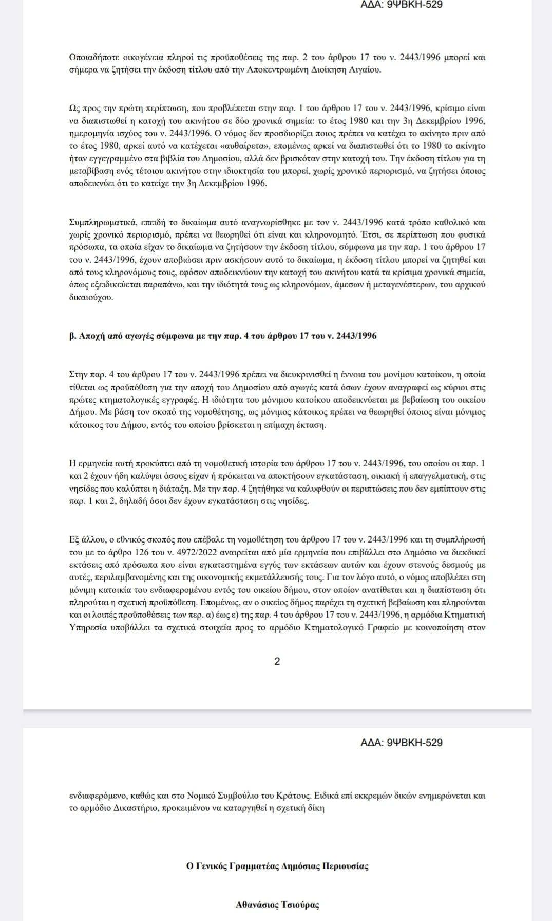 Θερμές ευχαριστίες εκφράζονται στον Γενικό Γραμματέα Δημόσιας Περιουσίας, κύριο Αθανάσιο Τσιούρα, για την άμεση κατανόηση και την ουσιαστική ανταπόκριση στο δίκαιο αίτημά μας. Η συνεργασία του υπήρξε καθοριστική για την επίτευξη αυτής της ιστορικής δικαίωσης.