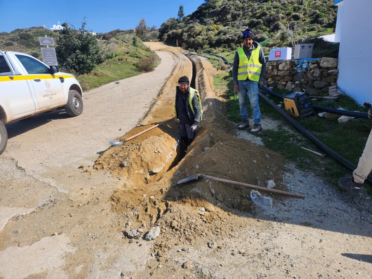 -Με την αποκατάσταση του οδοστρώματος ολοκληρώθηκε το έργο της “Επέκτασης του δικτύου ύδρευσης”. Προστέθηκαν 13 χιλιόμετρα στο υπάρχον δίκτυο πάνω στο οποίο συνδέθηκαν περισσότερες από 60 νέες παροχές σε όλες σχεδόν τις απομακρυσμένες περιοχές του νησιού μας.