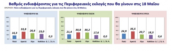 Βαθμός ενδιαφέροντος για τις περιφερειακές εκλογές ανάμεσα στους ψηφοφόρους των κομμάτων.