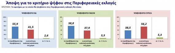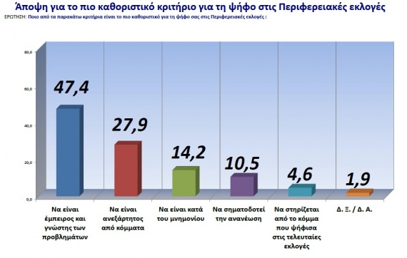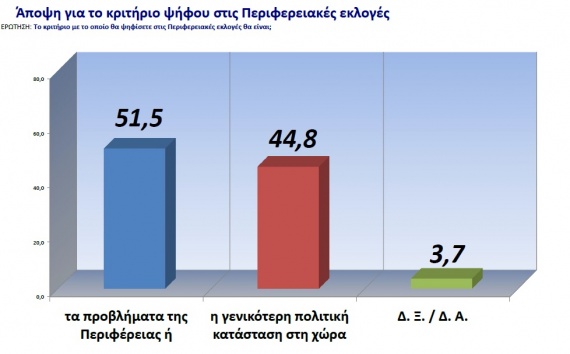 Με τοπικό κριτήριο δηλώνουν πως θα ψηφίσουν οι πολίτες (51,5%) αν και η γενικότερη πολιτική κατάσταση στη χώρα φαίνεται ότι επηρεάζει μεγάλη μερίδα κόσμου (44,8%).