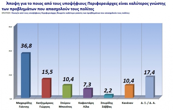 Ως γνώστης των προβλημάτων της περιφέρειας εμφανίζεται πρώτος με μεγάλη διαφορά ο Γιάννης Μαχαιρίδης.