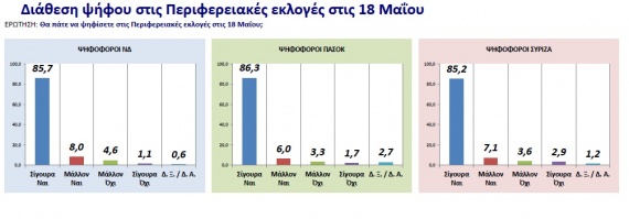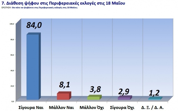 Η προσέλευση αναμένεται μαζική στις αυτοδιοικητικές κάλπες καθώς όπως καταγράφει η μέτρηση η συντριπτική πλειονότητα των πολιτών απαντούν με σιγουριά ότι θα ασκήσουν το εκλογικό τους δικαίωμα.