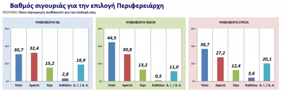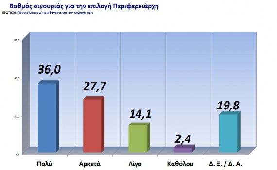 Στην πλειοψηφία τους οι πολίτες αισθάνονται σίγουροι για την επιλογή τους καθώς το σχετικό ποσοστό ανέρχεται αθροιστικά στο 63,7% σε αντίθεση με αυτούς που δηλώνουν λίγο ή καθόλου σίγουροι για την επιλογή τους 16,5%.