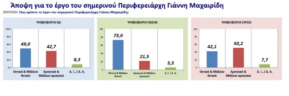 Άποψη για το έργο του περιφερειάρχη ανάμεσα στους ψηφοφόρους των κομμάτων.