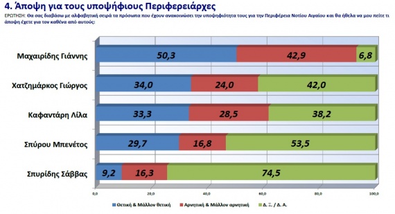 Πρώτος σε θετικές και μάλλον θετικές απόψεις βρίσκεται ο Γιάννης Μαχαιρίδης, ενώ ποικίλουν οι απόψεις για τους άλλους υποψηφίους με μεγάλο μέρος των πολιτών να μην εκφράζει γνώμη.