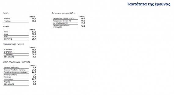 Μεγάλο είναι το ποσοστό των αναποφάσιστων που ανέρχεται στο 17,8%, η αποχή καταγράφεται σε πολύ χαμηλά επίπεδα μόλις στο 3,6% . Λευκό φαίνεται να προτιμά το 3,9 των ερωτηθέντων.
