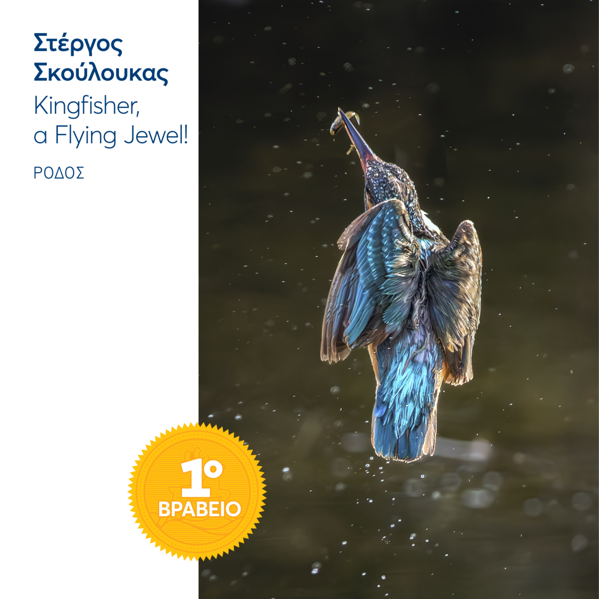 Το 1ο Βραβείο απέσπασε ο κ. Σκούλουκας Στέργος, με τη φωτογραφία «Κingfisher, a Flying Jewel!» στη Ρόδο.