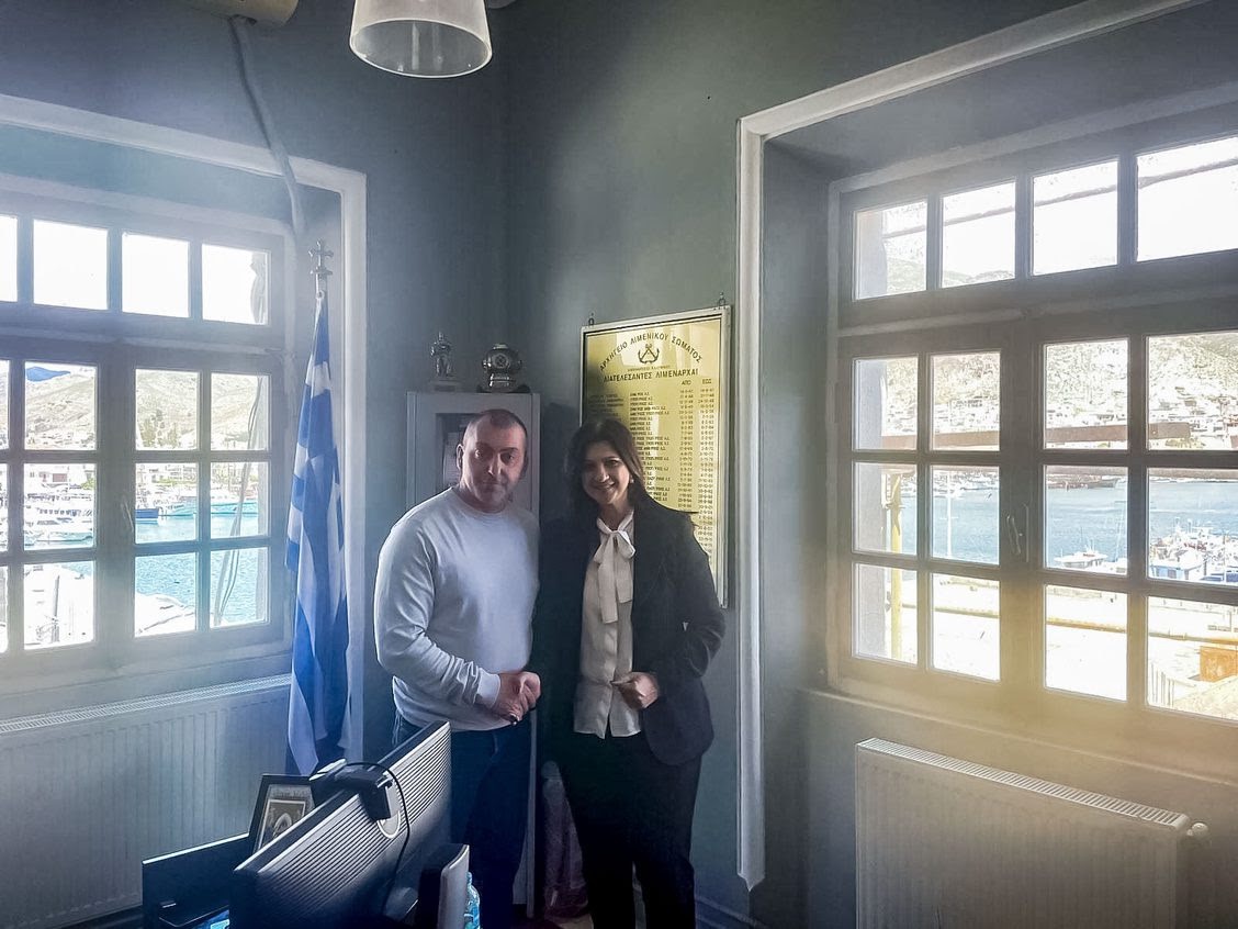 Στη συνέχεια η κ. Εμμανουήλ επισκέφθηκε το Λιμεναρχείο, όπου την υποδέχτηκε ο Λιμενάρχης κ. Τσαγκάρης Θεόφιλος και είχε μια ενδιαφέρουσα και ενημερωτική συζήτηση γύρω από τις ιδιαιτερότητες και τις δυσκολίες της καθημερινότητάς τους.