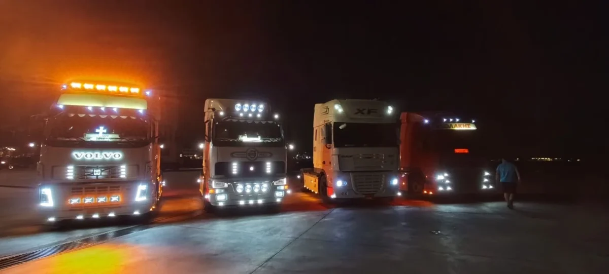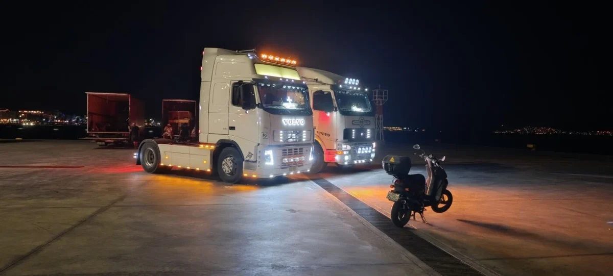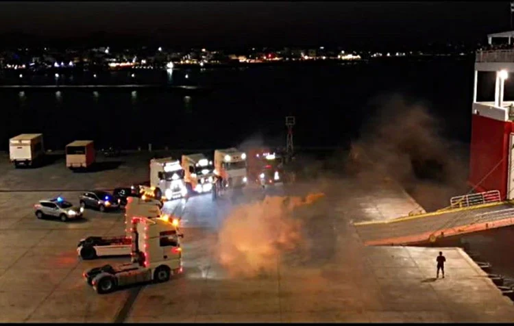 Απόψε το βράδυ, η Λιμενικός ονόματι Έλσα Τζουβαδάκη, επιβιβάστηκε στο πλοίο της γραμμής, με τους συναδέλφους της να την εύχονται καλό ταξίδι με καπνογόνα και πολύ θόρυβο που προκάλεσαν οδηγοί νταλικών, οι οποίοι αφού φόρτωσαν το εμπόρευμα που μετέφεραν στο καράβι έπειτα συγκεντρώθηκαν με τους τράκτορές τους στο λιμάνι και κόρναραν για αρκετή ώρα!