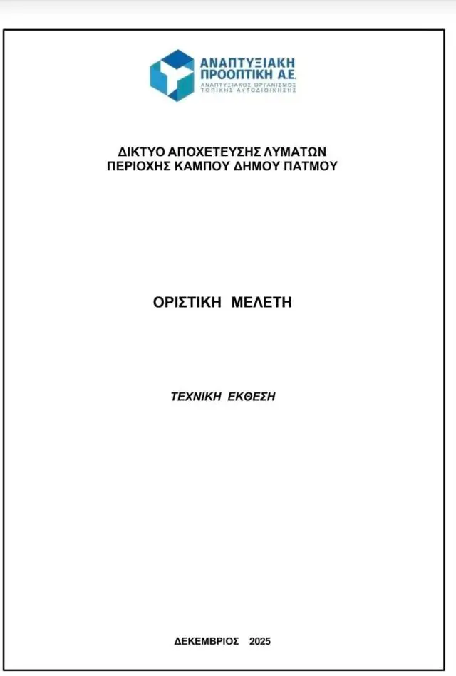 Ο Δήμος Πάτμου ανακοινώνει με ιδιαίτερη ικανοποίηση την ολοκλήρωση και έγκριση της οριστικής μελέτης για το έργο «Δίκτυο αποχέτευσης λυμάτων περιοχής Κάμπου».