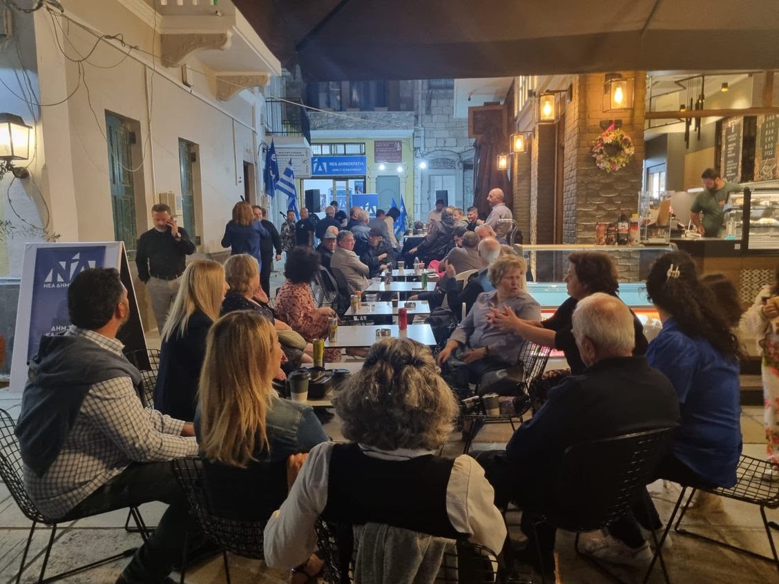 Στη συνέχεια παραβρέθηκε στην ομιλία του προέδρου της ΝΔ, Κυριάκου Μητσοτάκη, μαζί με παλιά και νέα στελέχη του κόμματος και πλήθος κόσμου, που έγινε σε κεντρικό σημείο της πόλης, στο Μαντράκι.