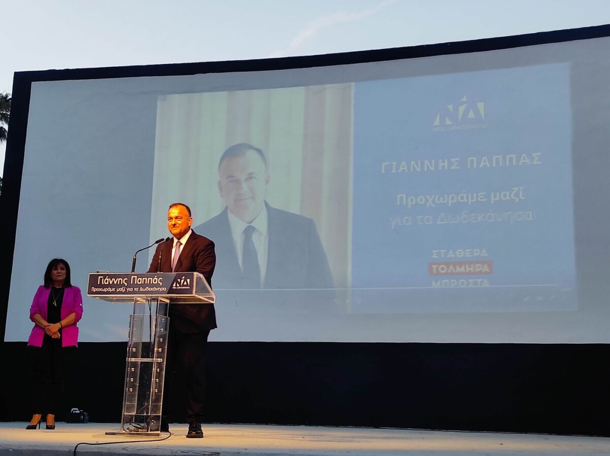 Ο υποψήφιος βουλευτής Δωδεκανήσου της ΝΔ Γιάννης Παππάς, πραγματοποίησε το απόγευμα της Κυριακής 14 Μαϊου την προεκλογική του ομιλία στην στην Κω.