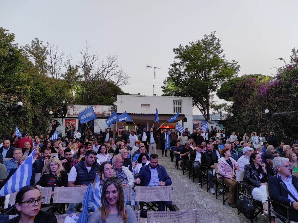 Πλήθος κόσμου συγκεντρώθηκε στο Θερινό Κινηματογράφο ΟΡΦΕΑ για να δώσει τις ευχές του στον υποψήφιο βουλευτή και να παρακολουθήσει την πολιτική του ομιλία, μια εβδομάδα πριν τις Εθνικές Εκλογές της 21ης Μαϊου. Τον κόσμο υποδεχόταν μουσικά με το σαξόφωνο του ο μαέστρος-αρχιμουσικός Θανάσης Πουλιού, ενώ στην είσοδο δινόταν σε κάθε μαμά, γλαστράκι με βασιλικό δώρο για τη γιορτή της μητέρας.