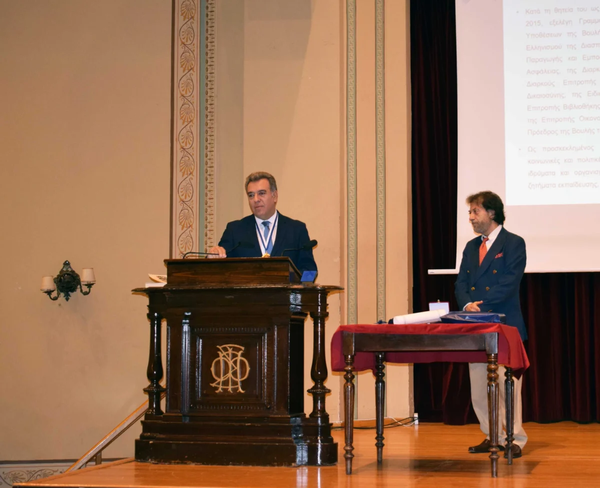 Στην κατάμεστη και ιστορική αίθουσα εκδηλώσεων του Συλλόγου στο κέντρο της Αθήνας, ο Πρόεδρος του Συλλόγου, κ. Κωνσταντινόπουλος, ο Γενικός Γραμματέας, κ. Φωκάς, αλλά και όλα τα μέλη του διοικητικού συμβουλίου μίλησαν με ιδιαίτερα θερμά και τιμητικά λόγια για τον κ. Κόνσολα.