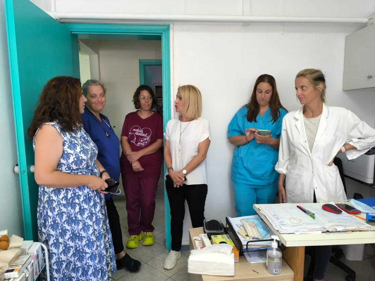 Στη συνέχεια, η Μίκα Ιατρίδη βρέθηκε στο Κέντρο Υγείας, όπου είχε την ευκαιρία να δει την πρόοδο των εργασιών σχετικά με την κτιριακή αναβάθμισή του, αλλά και να συνομιλήσει με το ιατρικό και νοσηλευτικό προσωπικό για τα θέματα που αντιμετωπίζουν, με κυριότερο αυτό της στελέχωσης και των εφημεριών.