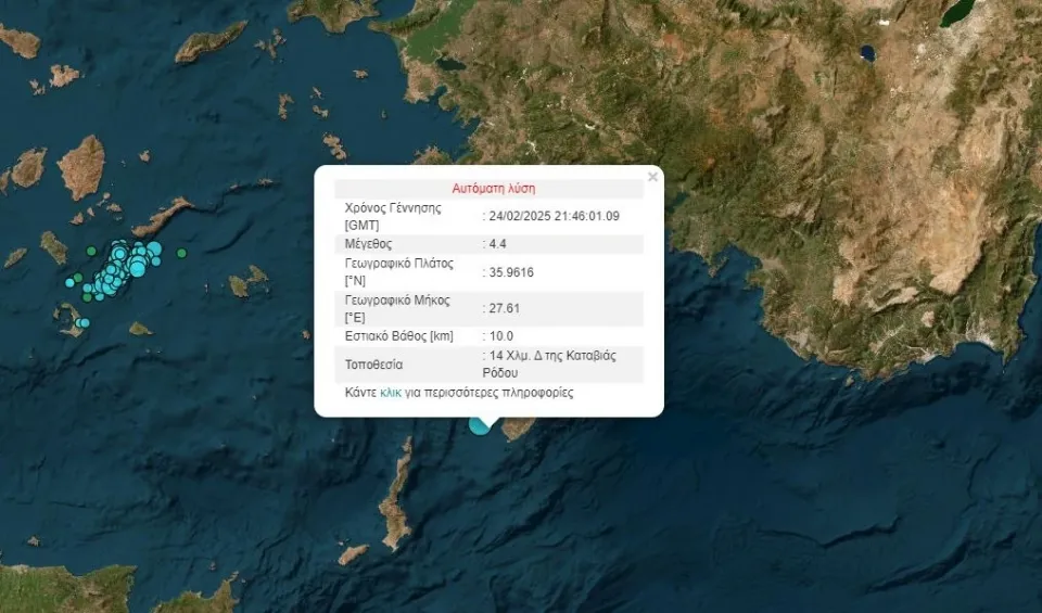 Ισχυρός σεισμός σημειώθηκε το βράδυ της Δευτέρας 24 Φεβρουαρίου στην Ρόδο.