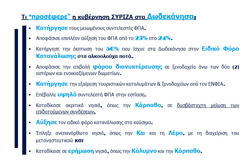 Με κλειστά μάτια, στα τυφλά και ξεδιάντροπα, εμπαίζει τον Ελληνικό λαό, καταδικάζει τις Δωδεκανήσιες και τους Δωδεκανήσιους και προκαλεί πολικές θερμοκρασίες ακινησίας στην αγορά.