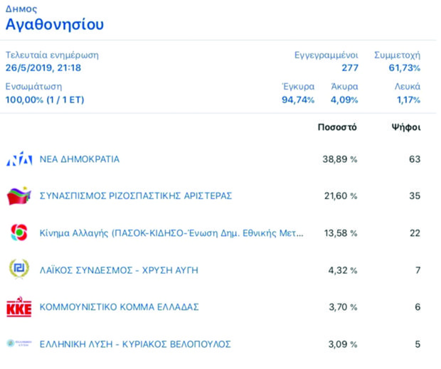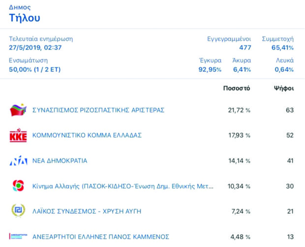 Αναλυτικά ανά νησί τα έξι πρώτα κόμματα: