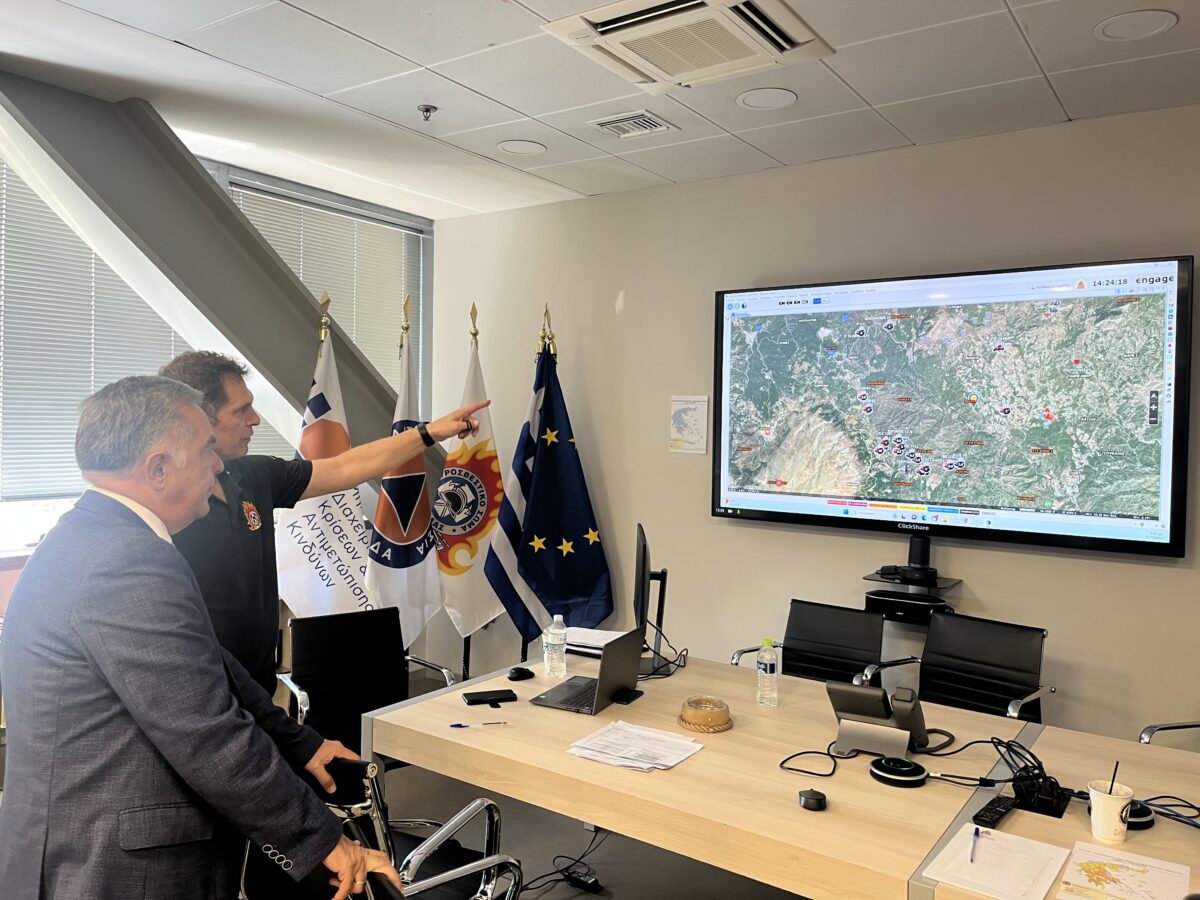 Στην αίθουσα επιχειρήσεων του Αρχηγείου της Πυροσβεστικής Υπηρεσίας ενημερώθηκε ο Βασίλης Α. Υψηλάντης από τον Υπαρχηγό του Πυροσβεστικού Σώματος κ. Μάριο Αποστολίδη για την κατάσταση που διαμορφώνεται στο μέτωπο της φωτιάς στην Ρόδο.