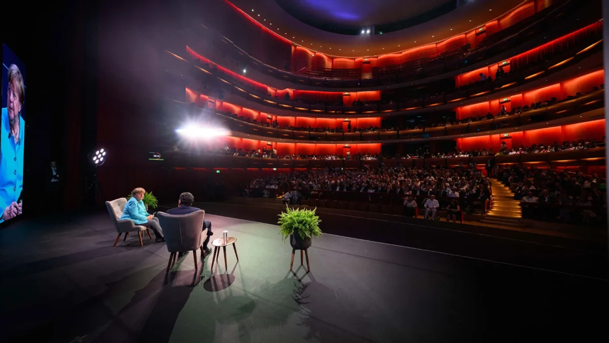 Στην κατάμεστη αίθουσα «Σταύρος Νιάρχος» της Εθνικής Λυρικής Σκηνής, η Ανγκελα Μέρκελ, σε μια αποκαλυπτική εφ’ όλης της ύλης συζήτηση με τον διευθυντή της «Καθημερινής» Αλέξη Παπαχελά, μίλησε για τα γεγονότα που στιγμάτισαν την περίοδο της οικονομικής κρίσης, αποκάλυψε άγνωστες πτυχές από την κορύφωση του ελληνικού δράματος το 2015, ανέπτυξε την προσέγγισή της για την Ευρώπη και τον κόσμο στις νέες συνθήκες που διαμορφώνονται, μιλώντας για τον Τραμπ, τον Πούτιν, το Ουκρανικό και τον ρόλο της Ε.Ε. Επίσης αναφέρθηκε στην προσωπική και την πολιτική της διαδρομή, αλλά και τη ζωή μετά την πολιτική.