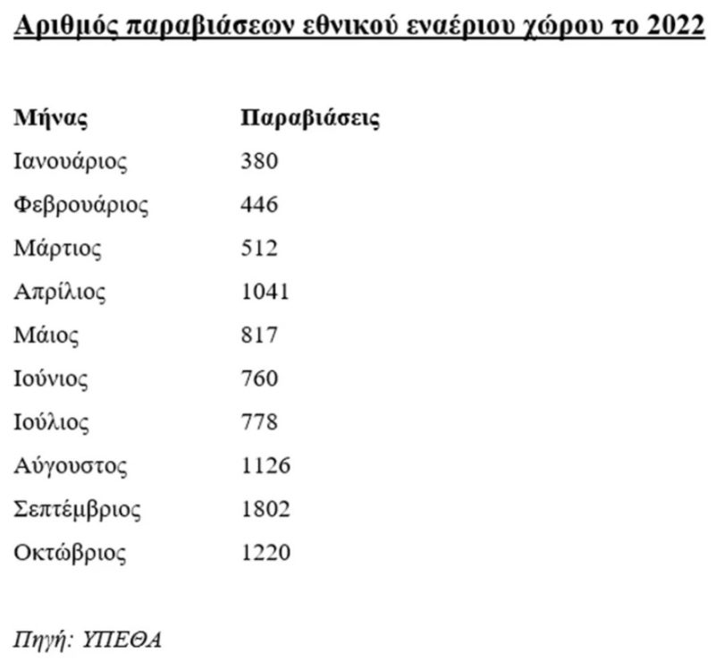 Από την αρχή του έτους μέχρι σήμερα έχουν καταγραφεί 8.882 παραβιάσεις του εθνικού εναέριου χώρου, αριθμός ρεκόρ για την τελευταία πενταετία