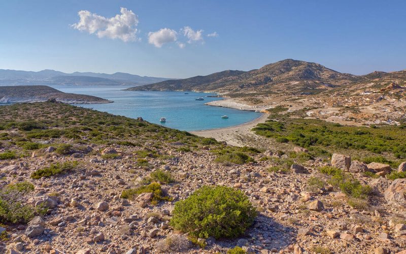 Φυσική ομορφιά χωρίς ανθρώπινη παρέμβαση, τα πιο γαλανά νερά του Αιγαίου και ένα σκηνικό εξόχως τροπικό καλωσορίζουν τον επισκέπτη σε ένα νησί που παραμένει άγνωστο και ανεξερεύνητο. Πολυσύχναστη είναι μόνο για τα ιδιωτικά σκάφη, που χαρίζουν έναν κοσμοπολίτικο χαρακτήρα μέσα στην απόλυτη ερημιά.
