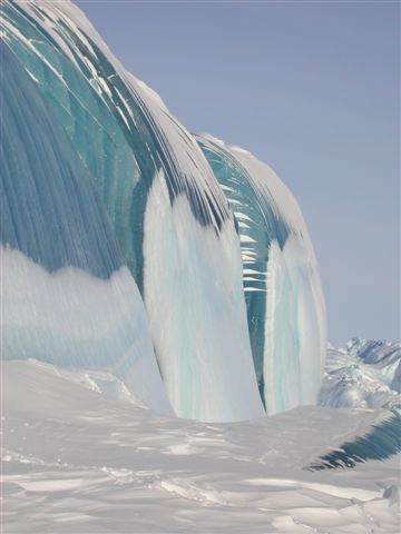 Μοιάζει με ένα κύμα το οποίο πάγωσε στον αέρα. Κάτι τέτοιο ωστόσο είναι αδύνατο να συμβεί, ακόμα και υπό τις ακραίες θερμοκρασίες της μόνιμα παγωμένης ηπείρου.