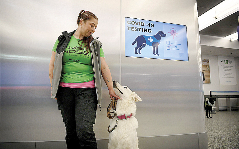 ΕΛΣΙΝΚΙ. Οι πρώτοι τέσσερις σκύλοι που έχουν εκπαιδευθεί ώστε να αναγνωρίζουν την οσμή του κορωνοϊού ξεκινούν από σήμερα βάρδιες στο αεροδρόμιο του Ελσίνκι, όπως ανέφεραν οι Αρχές του αεροδρομίου.