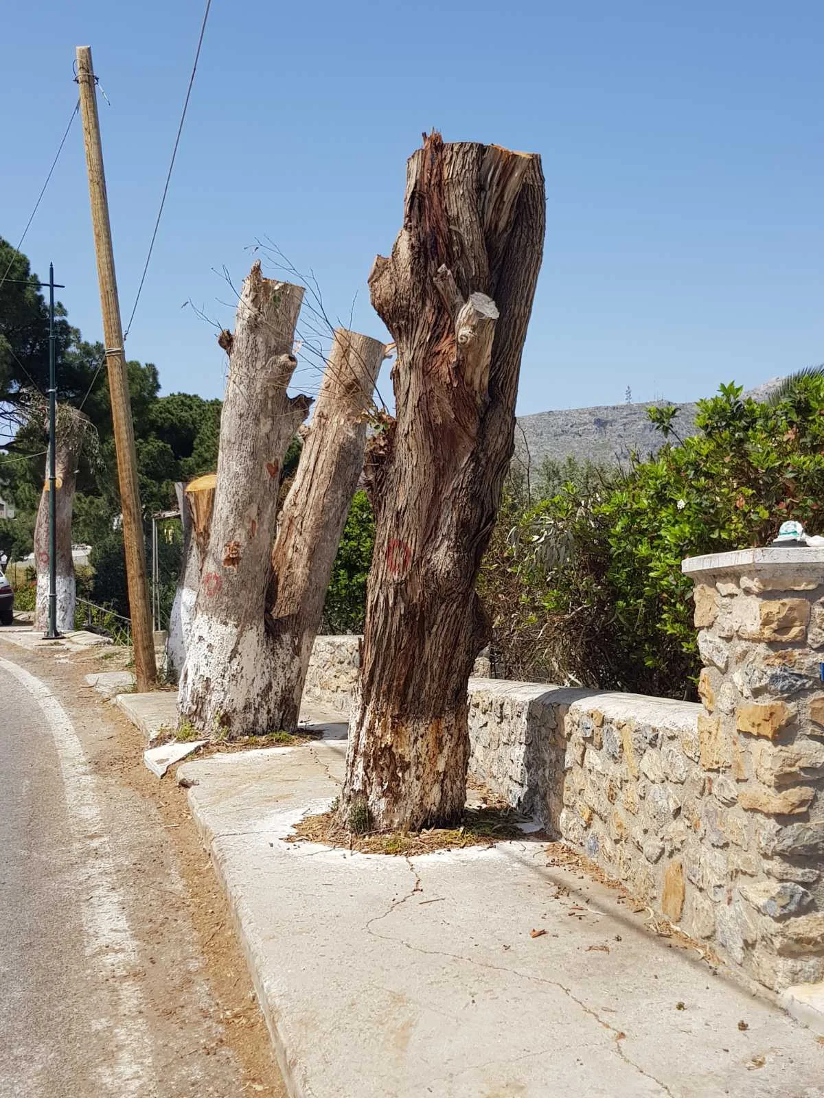 But what astounds me as a human being is Mr. Kolias’ habit of denouncing actions he himself committed! We’re talking about the “Picasso of tree pruning” (see photos below), the master of “trees for votes”!