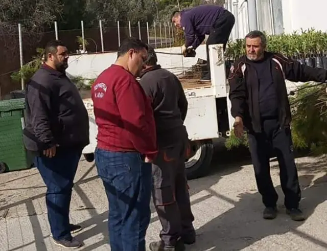 50 κυπαρίσσια, 50 πικροδάφνες, 20 πεύκα. -