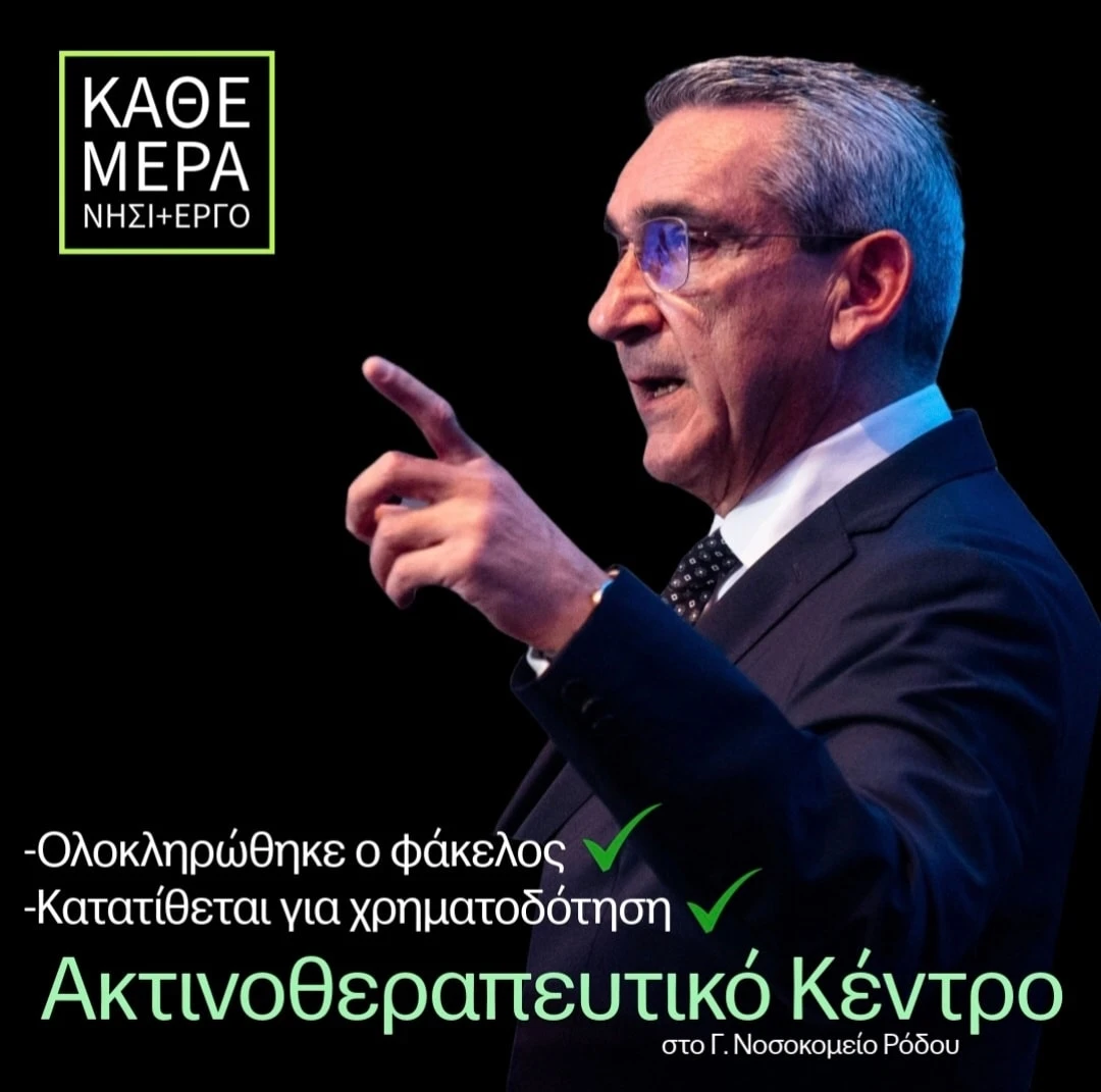 Με την κατάθεση του φακέλου χρηματοδότησης για την κατασκευή Ακτινοθεραπευτικού Κέντρου στη Ρόδο, ανοίγει ένα νέο κεφάλαιο στην παροχή υπηρεσιών υγείας στα Δωδεκάνησα. Το έργο, που αποτελεί πάγιο αίτημα της τοπικής κοινωνίας και όνειρο πολλών οικογενειών που βρέθηκαν αντιμέτωπες με τη σκληρή πραγματικότητα του καρκίνου, μπαίνει πλέον σε τροχιά υλοποίησης. Η ανακοίνωση έγινε μέσω δημόσιας ανάρτησης του περιφερειάρχη, ο οποίος περιέγραψε το έργο όχι μόνο ως τεχνικό και διοικητικό επίτευγμα, αλλά ως υπόσχεση που δόθηκε και τηρήθηκε απέναντι στην κοινωνία.