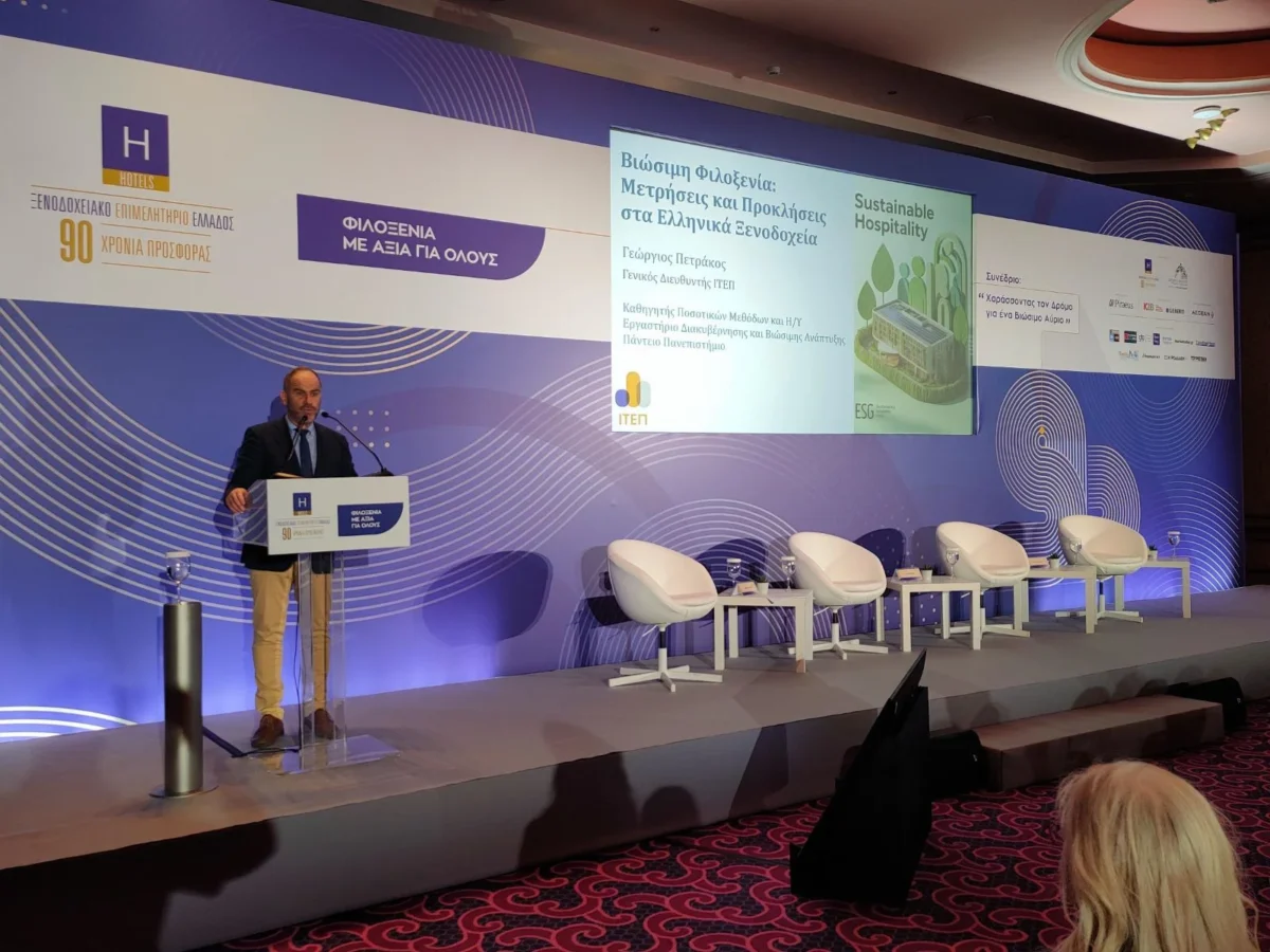 Κατά την έναρξη των εργασιών, παρουσιάστηκε από τον Δρ. Γεώργιο Πετράκο, Καθηγητή Ποσοτικών Μεθόδων & Η/Υ, στο Πάντειο Πανεπιστήμιο και Γενικό Διευθυντή του ΙΤΕΠ, έρευνα του Ινστιτούτου με τίτλο “ ESG – Βιωσιμότητα του Ξενοδοχειακού Κλάδου”, στην οποία αποτυπώνονται οι επιδόσεις του ξενοδοχειακού κλάδου για τη βιωσιμότητα και πιο συγκεκριμένα: για την προστασία του περιβάλλοντος, την κοινωνική ευθύνη και τη σύγχρονη εταιρική διακυβέρνηση.