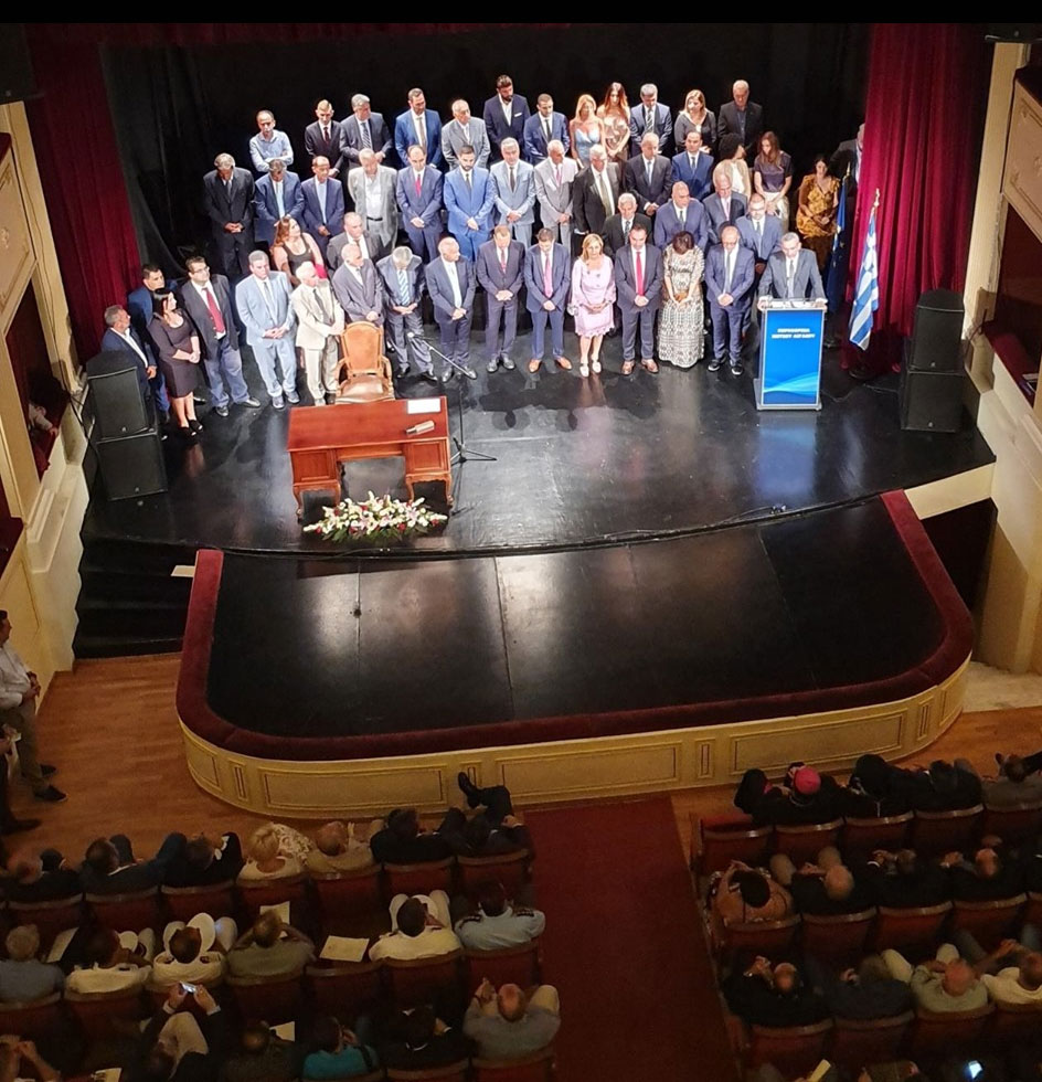 Η τελετή της ορκωμοσίας έγινε, όπως και το 2014, στον εμβληματικό χώρο του Θεάτρου “Απόλλων” στην Ερμούπολη της Σύρου, το απόγευμα του Σαββάτου, 31 Αυγούστου 2019.