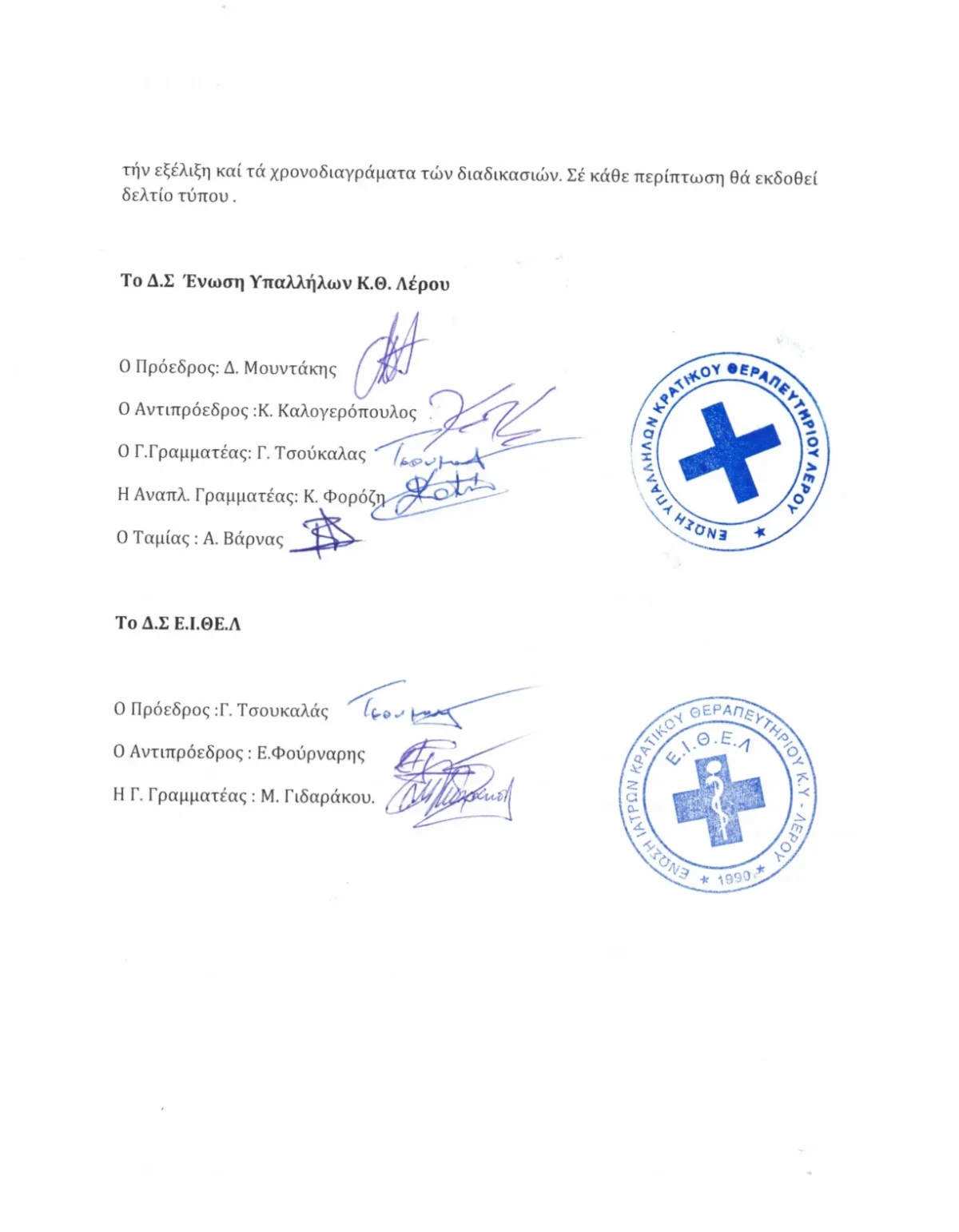 Για το Διοικητικό Συμβούλιο της Ένωσης Ιατρών Κ.Θ.-Γ.Ν-Κ.Υ Λέρου-Κ.Υ Πάτμου & Π.Π.Ι Λειψών- Αγαθονησίου.