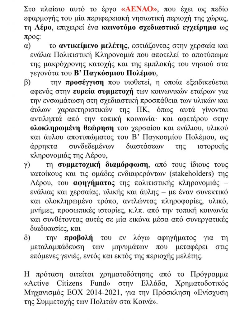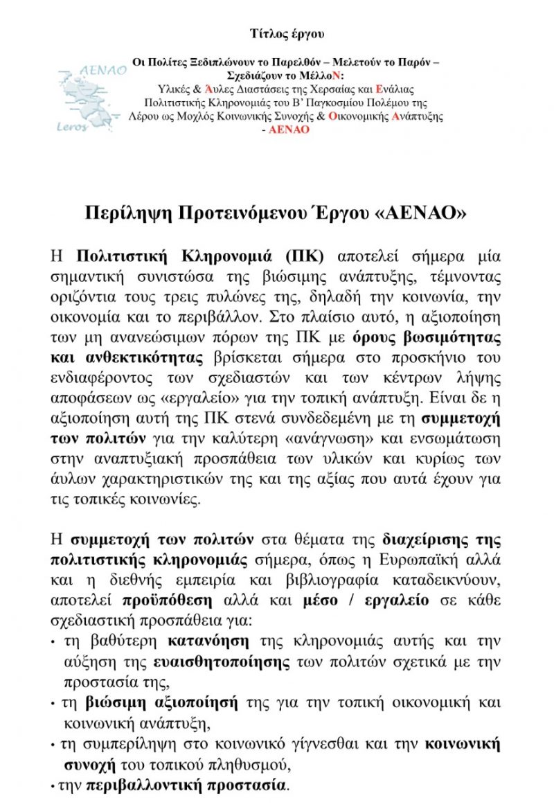 Αρχική » ΟΛΕΣ ΟΙ ΕΙΔΗΣΕΙΣ » ΤΑ ΝΕΑ ΤΗΣ ΛΕΡΟΥ » ΑΕΝΑΟ : H προσπάθεια του Δήμου Λέρου για την Ανάδειξη της Πολιτιστικής κληρονομιάς του τόπου μας