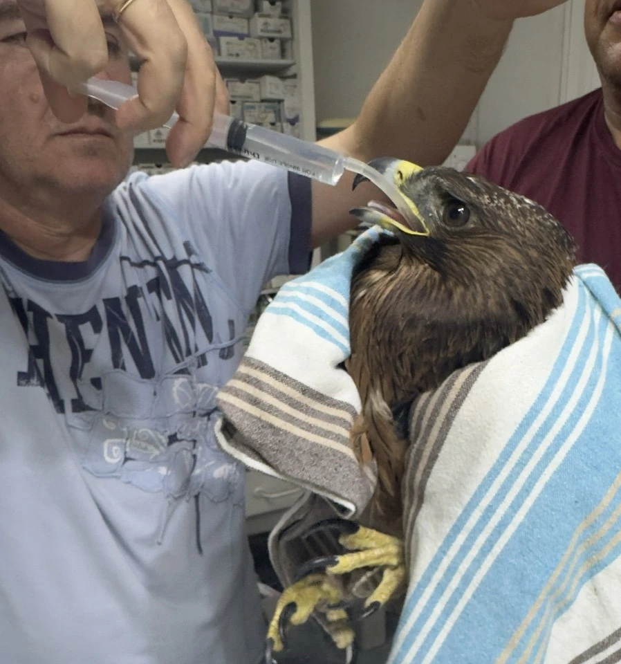 Σύμφωνα με τον κτηνίατρο Μιχάλη Κοντραφούρη, ο Γιώργος Σκοπελίτης, στέλεχος του Πολεμικού Ναυτικού, περιμάζεψε το αρπακτικό και το μετέφερε στο Κτηνιατρικό Κέντρο Λέρου όπου άμεσα του παρασχέθηκαν οι πρώτες βοήθειες.