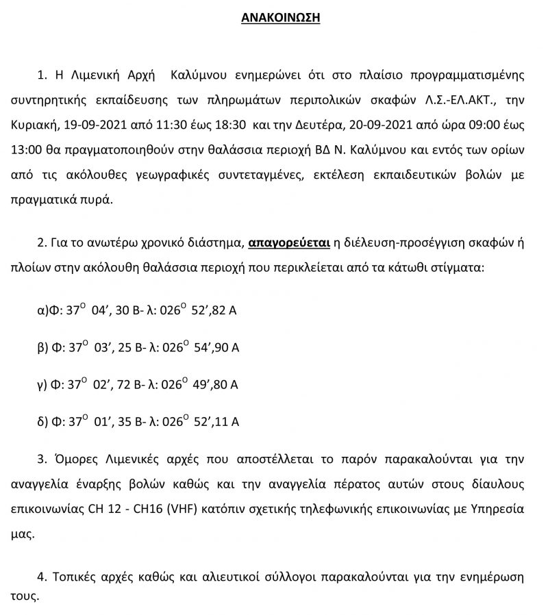 Ανακοίνωση από το ΛΙΜΕΝΑΡΧΕΙΟ Λέρου