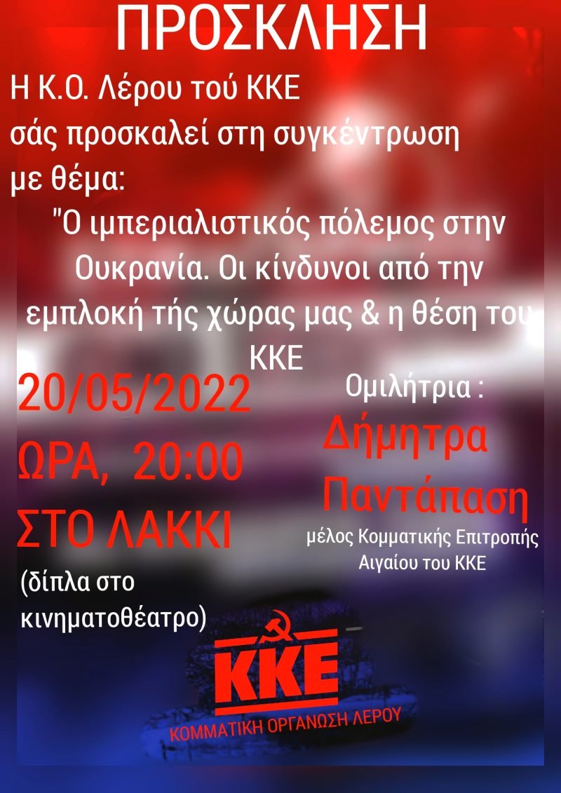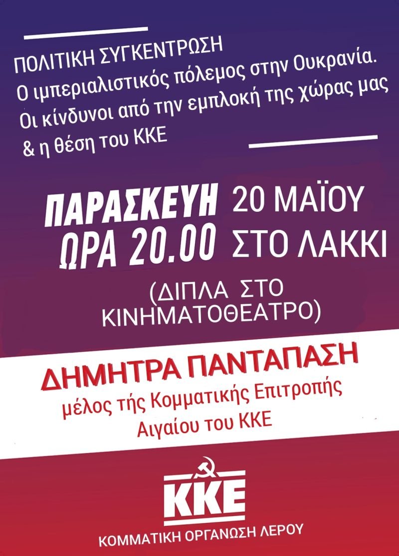 ΑΝΑΚΟΙΝΩΣΗ: Η Κομματική οργάνωση Λέρου του ΚΚΕ σας προσκαλεί σε πολιτική συγκέντρωση με θέμα: