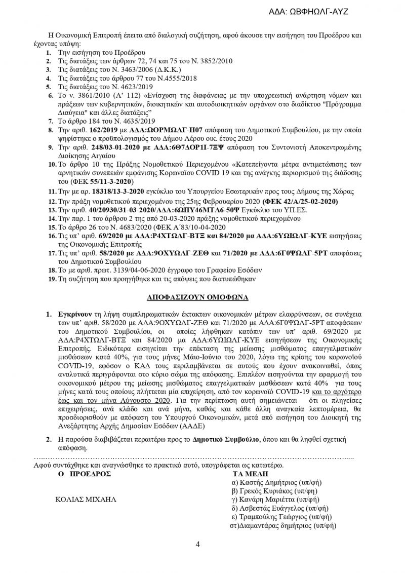 Σας παραθέτουμε αποφάσεις της Οικονομικής Επιτροπής του Δήμου μας σχετικά με την πανδημία: