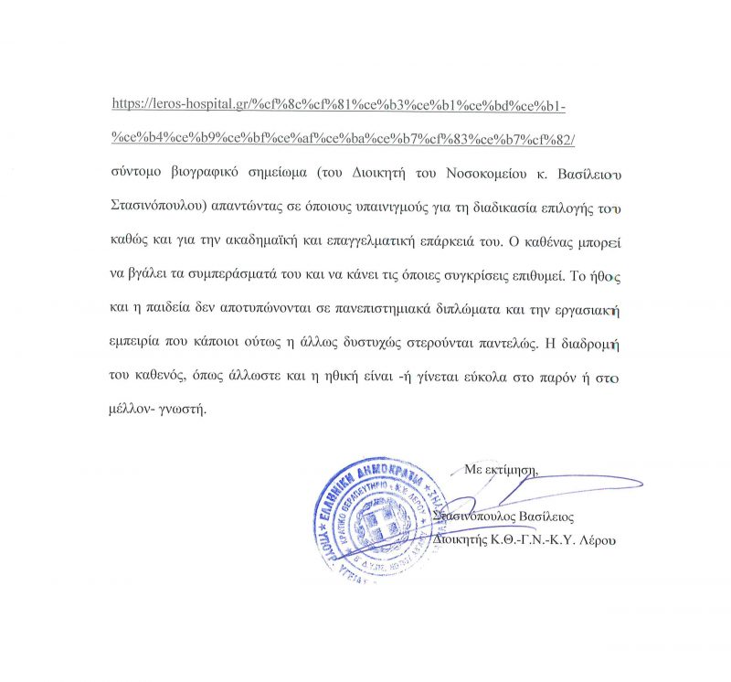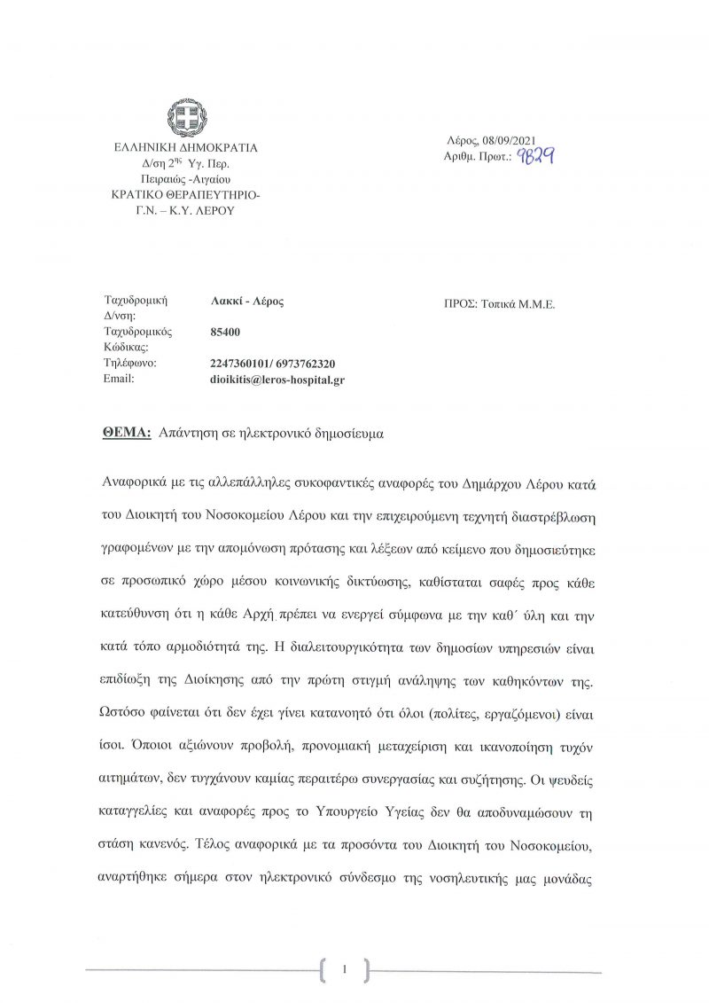 Αρχική » ΟΛΕΣ ΟΙ ΕΙΔΗΣΕΙΣ » ΤΑ ΝΕΑ ΤΗΣ ΛΕΡΟΥ » Απάντηση του Διοικητή ΚΘΛ σε ηλεκτρονικό δημοσίευμα