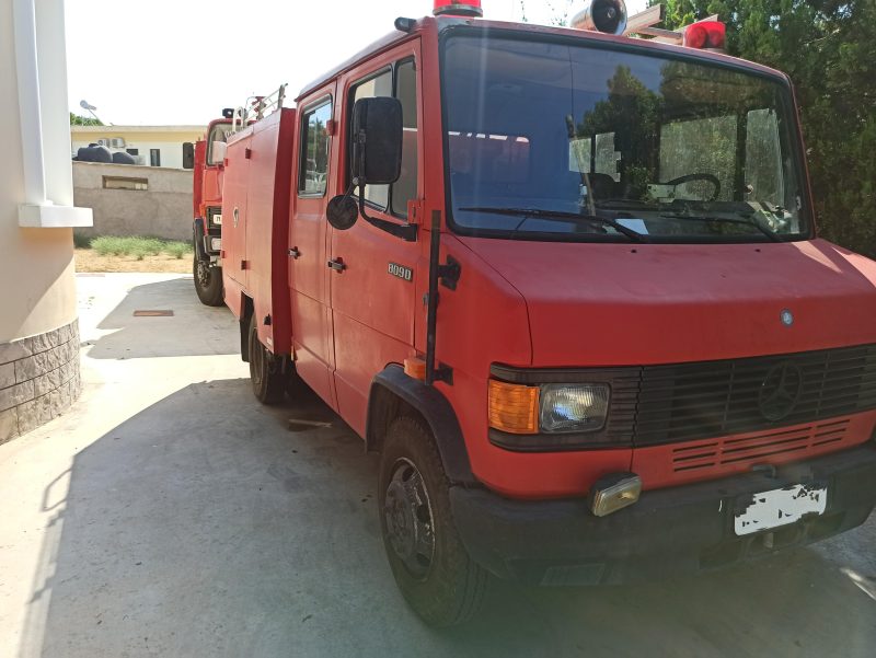 Το κλιμάκιο αρχικά επισκέφθηκε την πυροσβεστική υπηρεσία όπου ενημερώθηκε από το προσωπικό για τα προβλήματα που αντιμετωπίζει τόσο στην επικράτεια όσο και τοπικά. Ειδικότερα, στο πυροσβεστικό κλιμάκιο ως κυρίαρχα ζητήματα αναδείχθηκαν, η έλλειψη προσωπικού σύμφωνα και με το οργανόγραμμα, όπως και η έλλειψη μέσων για την εκτέλεση της αποστολής τους, με αποτέλεσμα να βάζουν οι ίδιοι οι πυροσβέστες το χέρι στην τσέπη για να διασφαλίσουν τους εαυτούς τους. Βασικό πρόβλημα αποτελεί και η προσωρινότητα των εποχικών συμβάσεων που δεν δίνει τη δυνατότητα να υπάρχει εξειδικευμένο προσωπικό όλο το χρόνο, κάτι που αυξάνει τον κίνδυνο για τους πυροσβέστες και το νησί. Σημειώνεται ότι για την εκτέλεση της αποστολής τους έχουν διατεθεί δύο παλαιά πυροσβεστικά οχήματα (το ένα του 1974 και το άλλο του 1990).