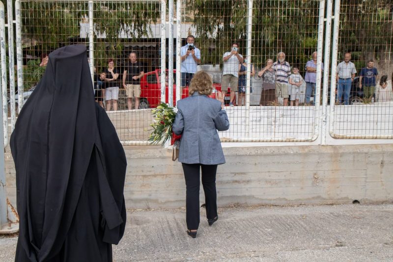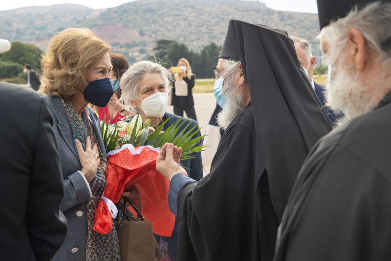 Τη Βασίλισσα Σοφία υποδέχτηκαν στο αεροδρόμιο του νησιού ο Μητροπολίτης Λέρου, Καλύμνου και Αστυπαλαίας κ.κ. Παΐσιος, ο Δήμαρχος Λέρου κ. Μιχάλης Κόλιας, ο Αντιδήμαρχος κ. Καστής Δημήτρης, ο Αντιδήμαρχος κ. Γρεκός Άκης, ο Πρόεδρος του Λιμενικού Ταμείου κ. Μπίλλης Νεκτάριος, ο Αρχιερατικός Επίτροπος π. Νικόδημος Φωκάς καθώς και ο π. Γεώργιος Γαμπιέρης.